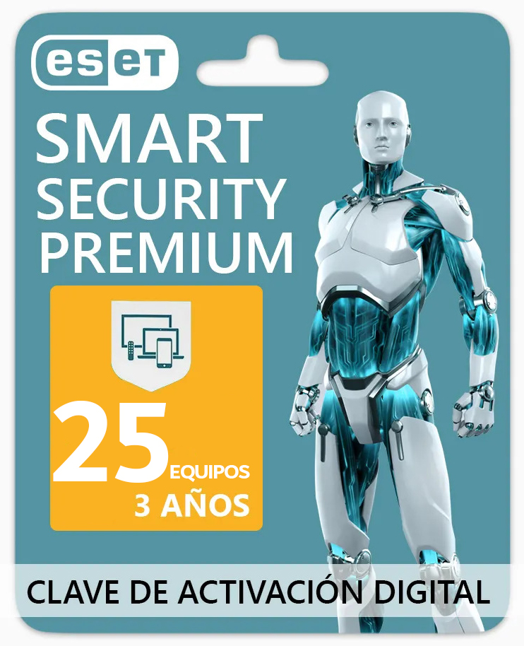 - Nombre del producto: ESET Smart/Home Security Premium Bind Key 25 Dispositivos 3 Años